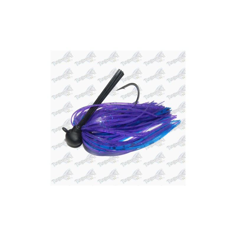 Jig Personalizado de color Violeta/BLue, predominando el Violeta. Puedes elegir el Jig de tipo y peso que desees. Jig de cabeza de tungsteno 80-97%, con faldellines de silicona de gran calidad, y atados con caucho resistente.