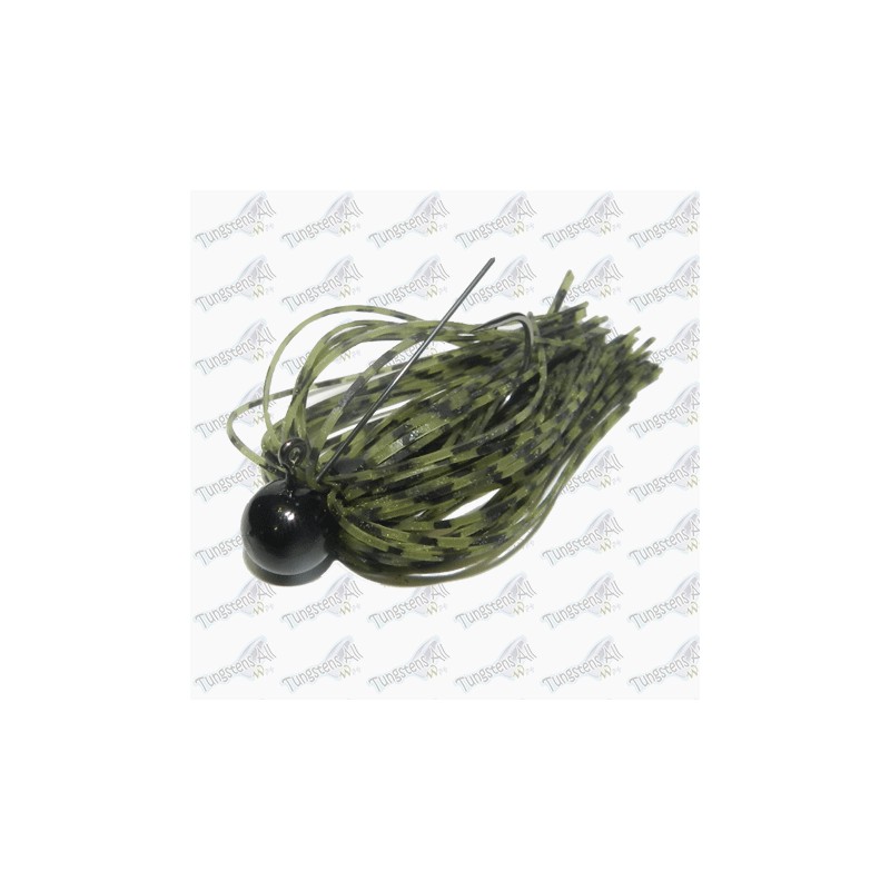 Su cabeza totalmente circular y con un acabado negro brillante, está fabricada en Tungsteno al 80% de pureza incorpora un fino anti hierbas fabricado con acero inoxidable. Los faldellines, que permanecen sujetos mediante una goma de caucho, están fabricados con silicona premium de máxima calidad,Este jig pensado para la pesca finesse.