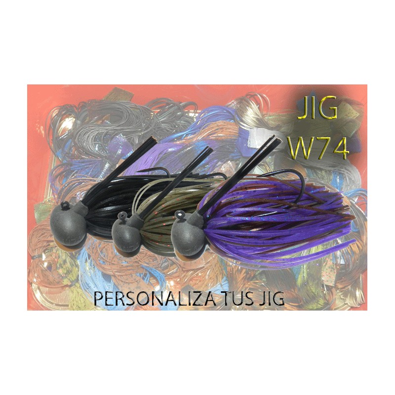 Jig W74, Producto diseñado por nuestra Marca Tungstens All. Jig de Tungsteno compacto, con Anzuelo del 2/0 Owner, con diseño especial pensado para que no se suelte el trailer. 8 Filamentos de antialgas, compuestos de Silicona o Rubber de gran calidad atados a mano.