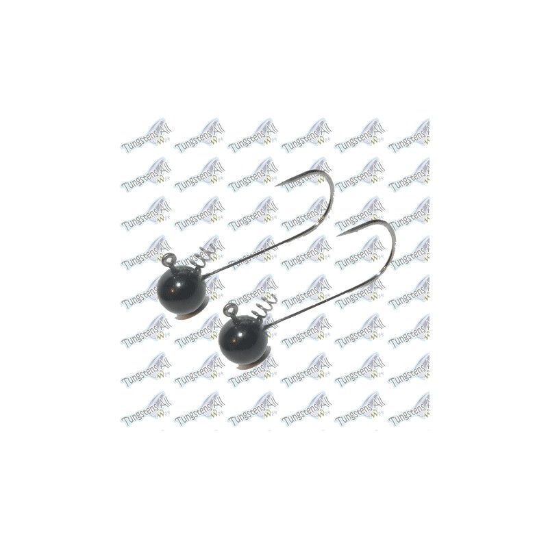 La cabeza compuesta con un 97% de tungsteno recibe un diseño redondo facilita la pesca en zonas con vegetación. Montado sobre un anzuelo Mustand 2/0 de calidad Premium con una inclinación a 60º y un muelle fino y largo totalmente moldeable de acero inoxidable, diseñado para introducir el señuelo fácilmente.