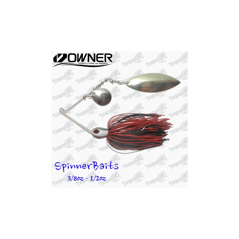 Spinnerbaits con cuerpo de Tungsteno 97% y alambre, con 2 palas ovaladas(Tipo Indiana). El Tungsteno hace que el señuelo sea mucho mas discreto y pequeño, cabeza de color blanco y negro, y acompañada de faldellines de silicola de gran calidad. Anzuelo Onwer