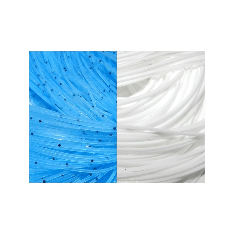 Spinnerbaits con cuerpo de Tungsteno 97% y alambre, con 2 palas ovaladas(Tipo Indiana). El Tungsteno hace que el señuelo sea mucho mas discreto y pequeño, cabeza de color blanco y negro, y acompañada de faldellines de silicola de gran calidad. Anzuelo Onwer